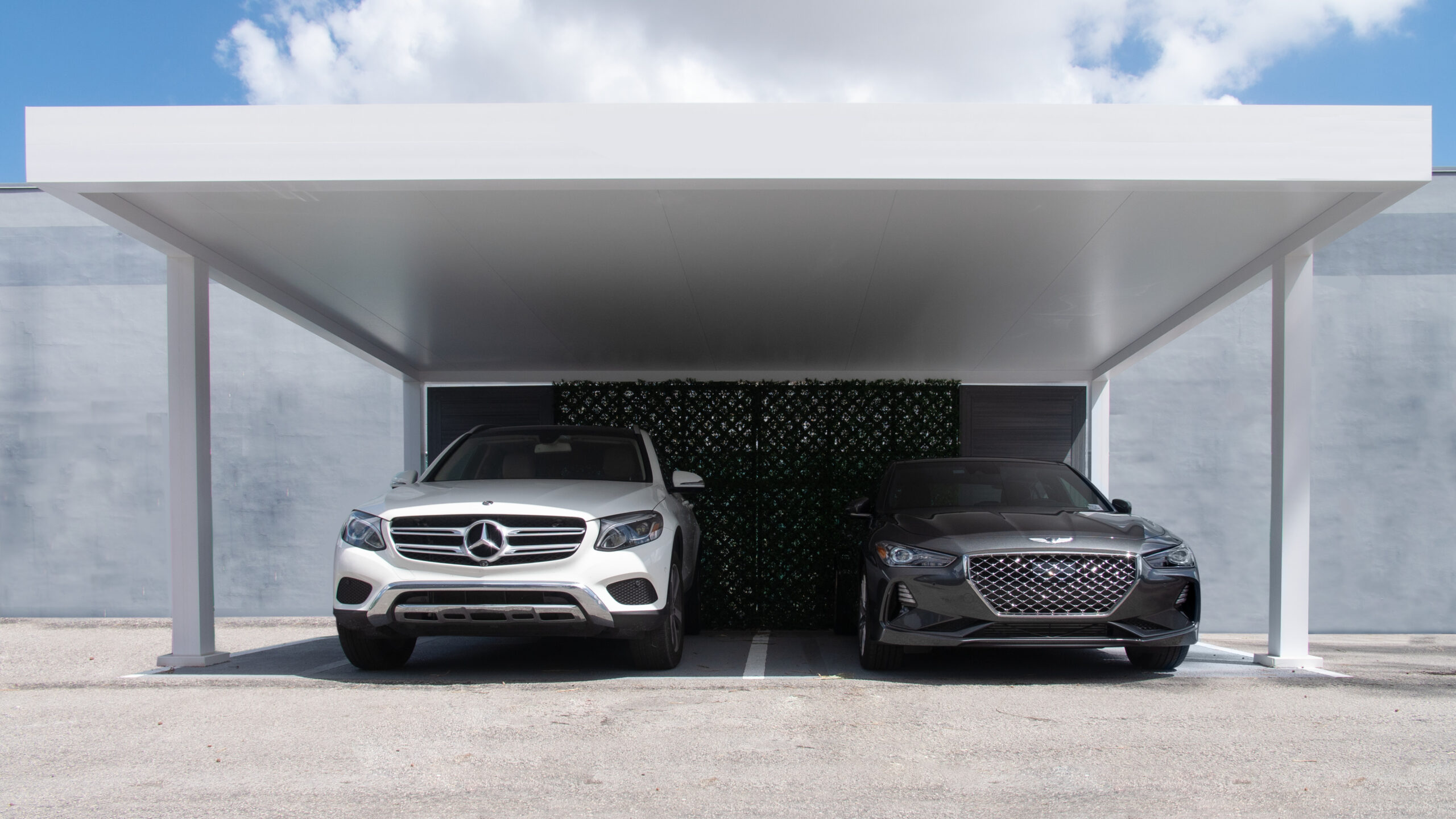 Durable aluminum provides the robustness needed to protect your vehicles, be it for two cars or to shelter your taller recreational toys.