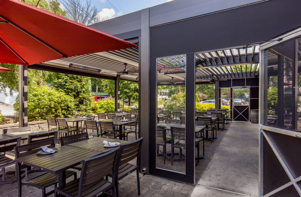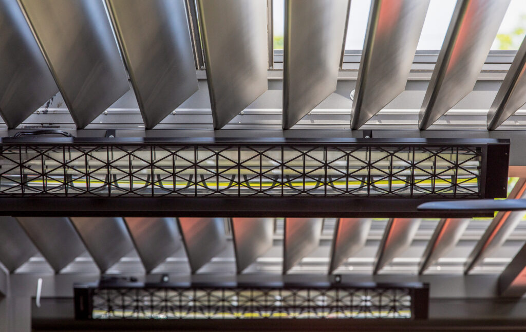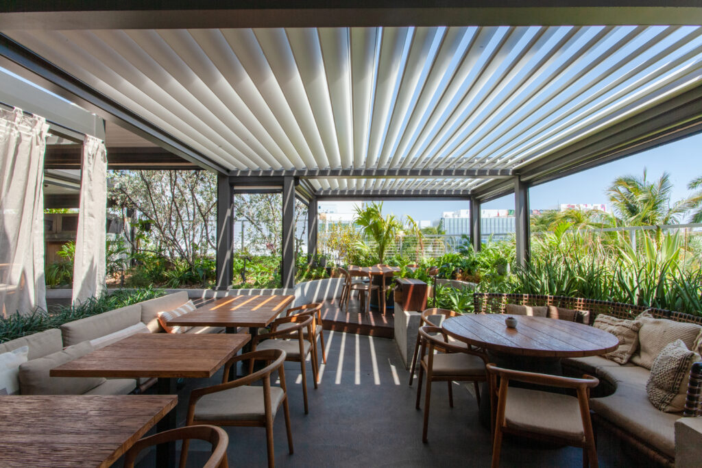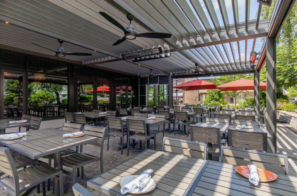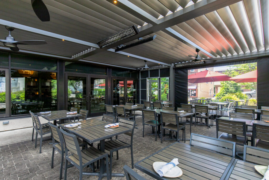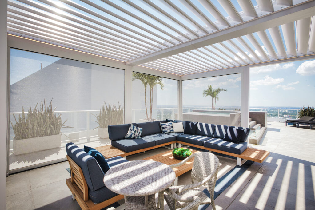 Our products are built to withstand all weather conditions. The R-BLADE™ incorporates unique features such as dual-walled louvers, hidden gutters, and various design options, ensuring comfort in both sunny and shaded settings. Additionally, our optional smart sensors automatically adjust to changes in sunlight or rain without any manual effort.