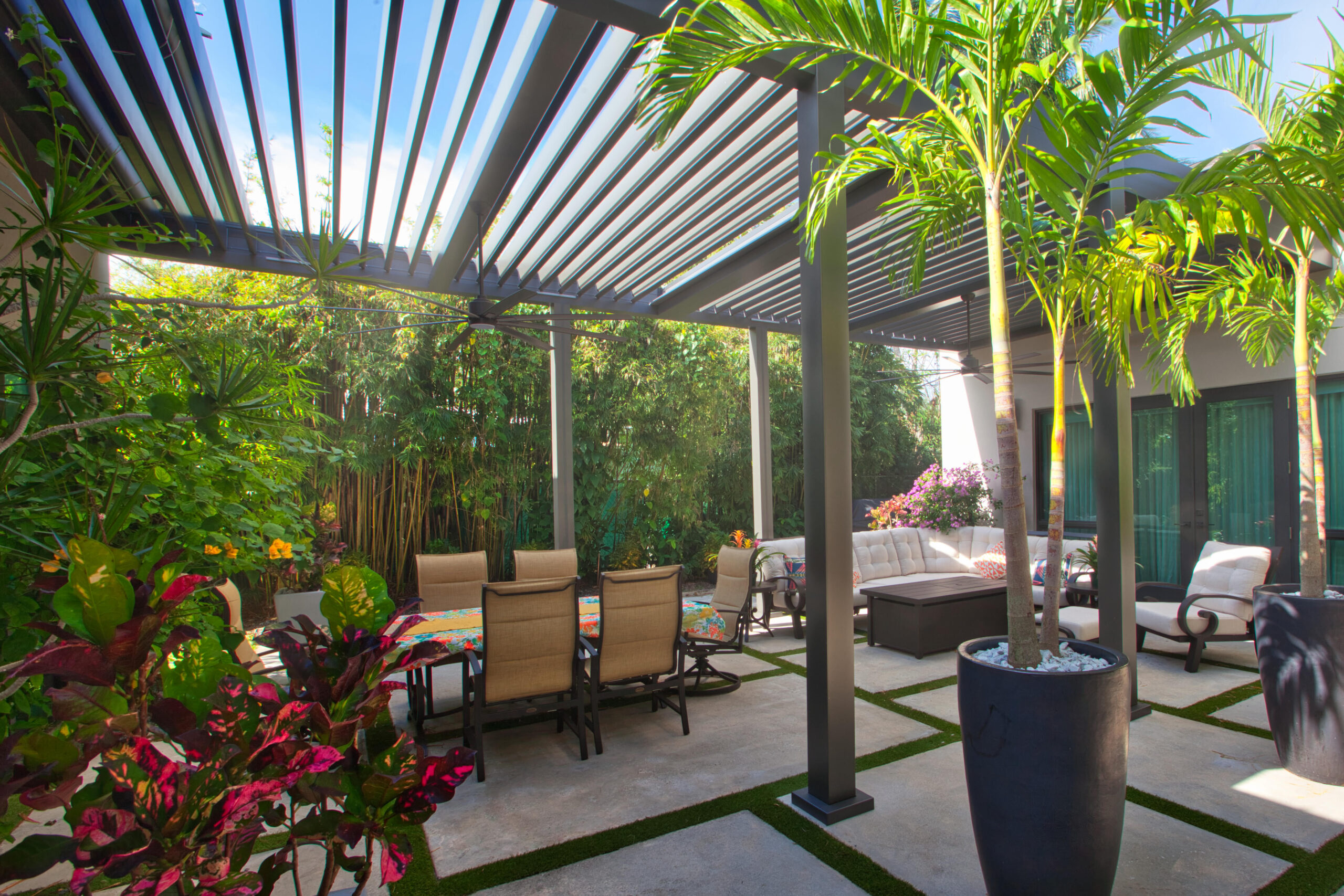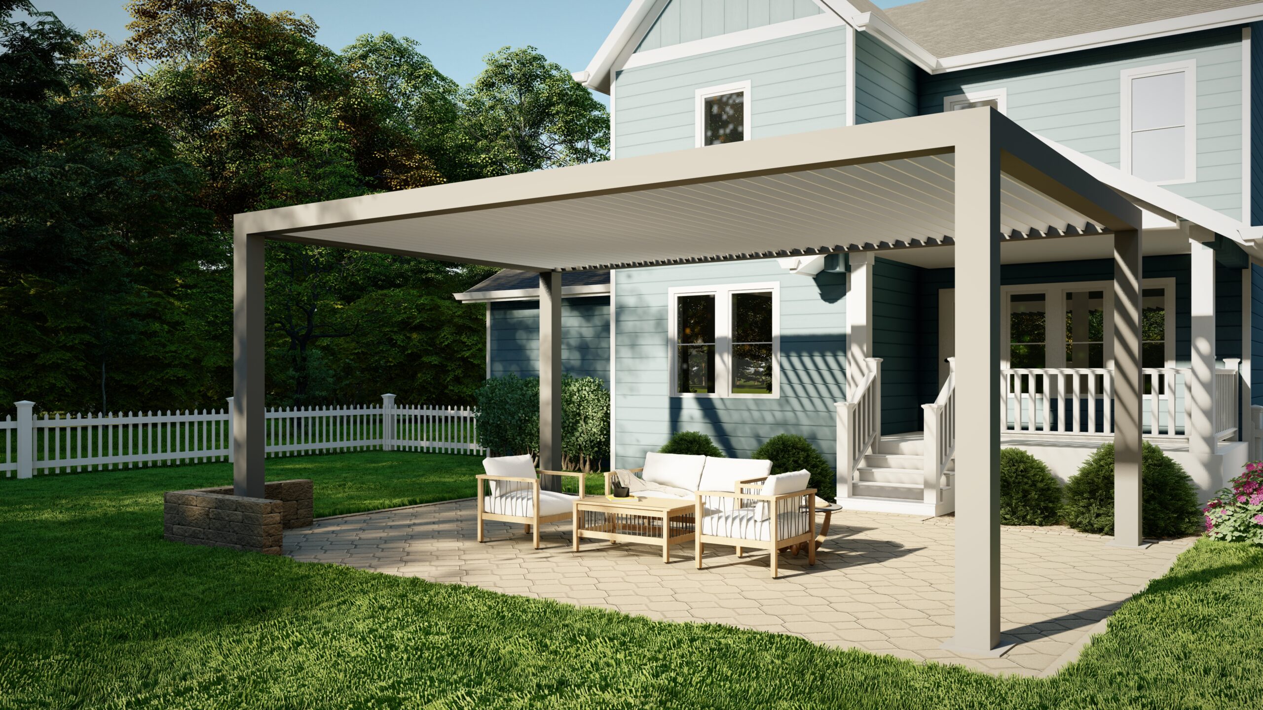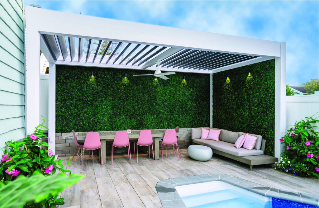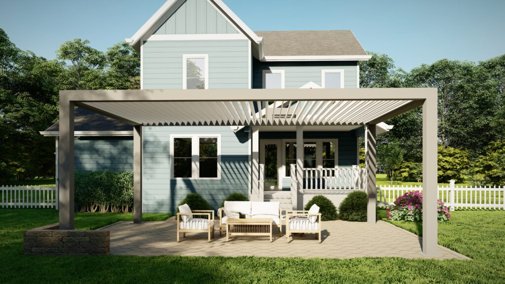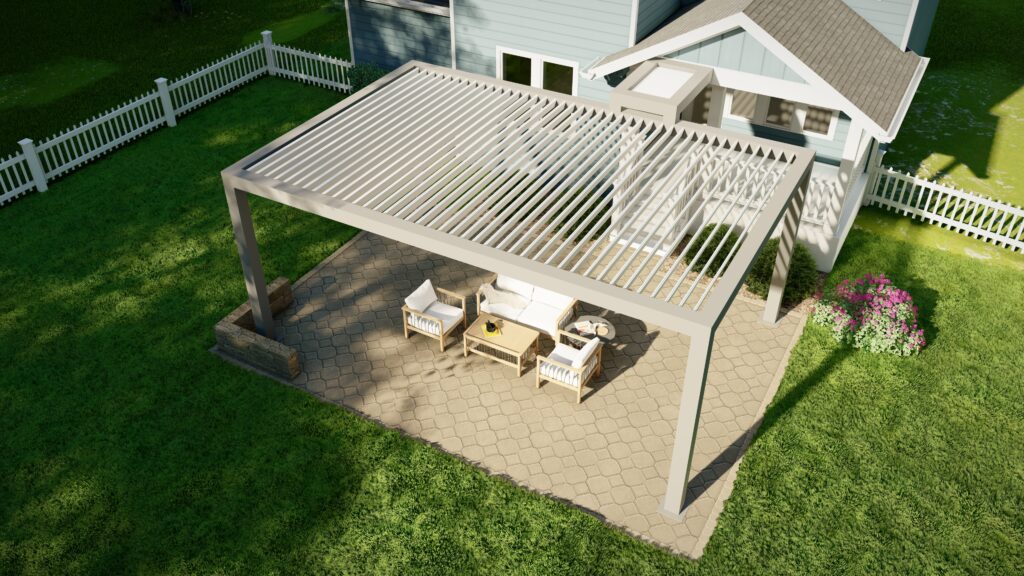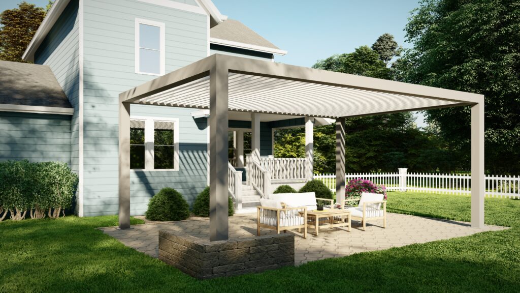 With our R-BLADE™ louvered roof, design a playful pergola that dances along with nature’s tune.