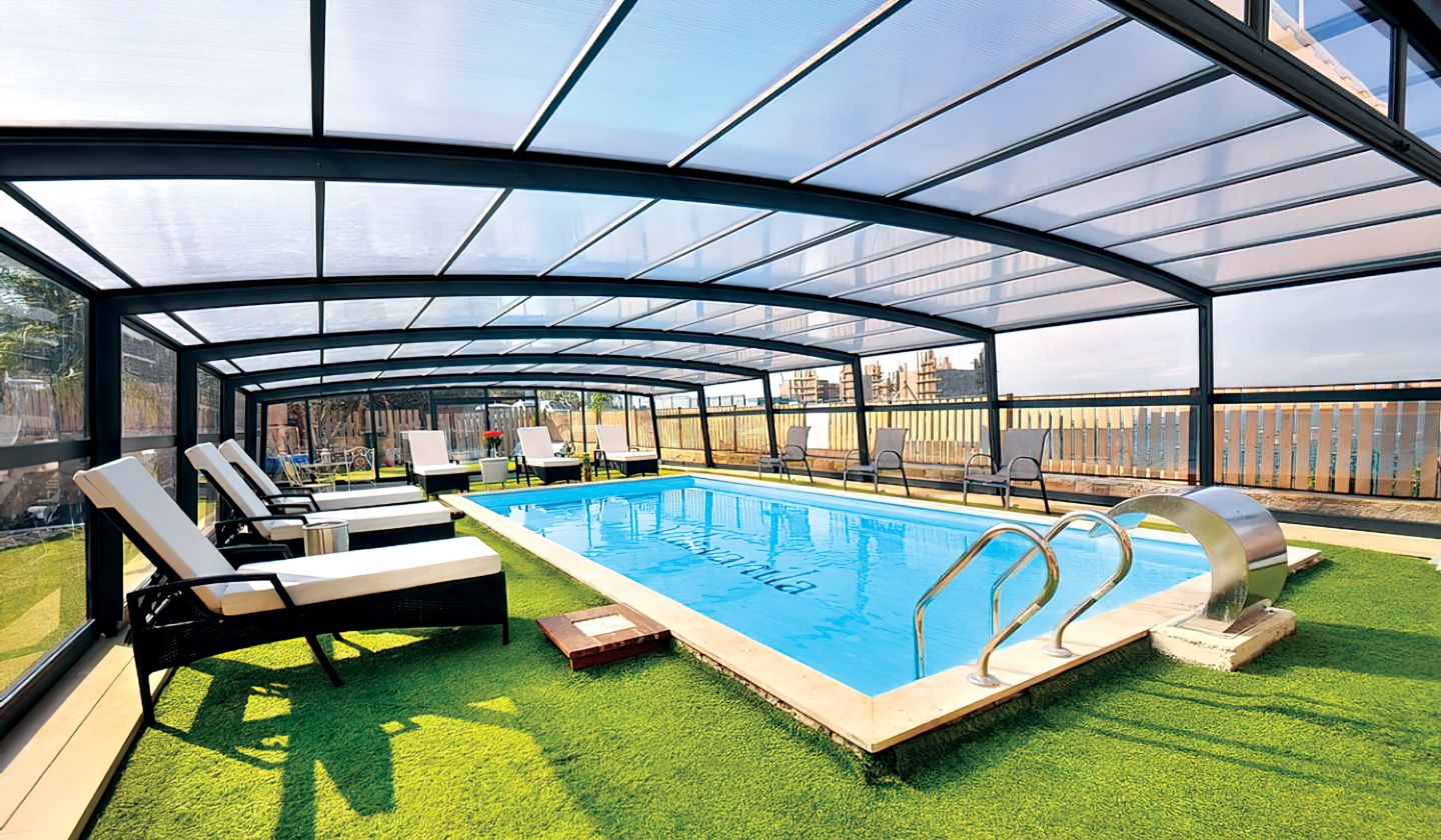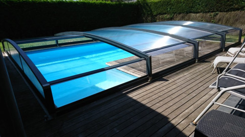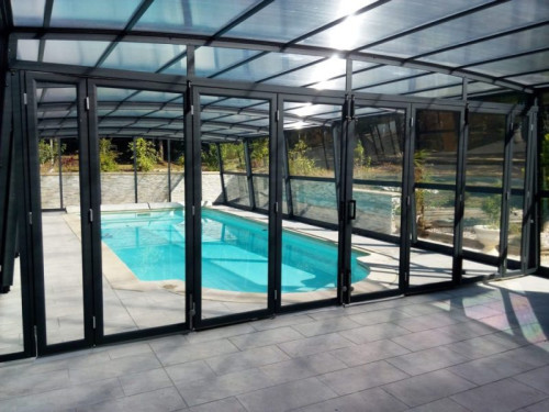 Swim all year long, while you enjoy the sun under glass or in the open air. The mid-height roof creates a true living space, while taking advantage of the clever nested design of our NEO cover, allowing you to choose how much of the pool you want to uncover based on the weather.